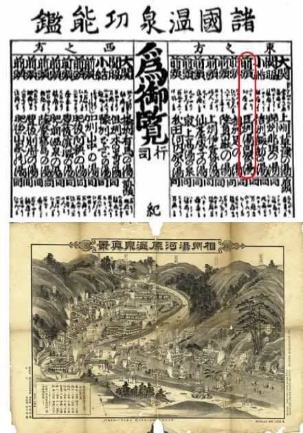 温泉旅行が普及した江戸時代には相撲番付にならい、全国の温泉地を東西に分けて格付けした温泉番付「諸国温泉効能鑑」がつくられます。湯河原温泉は東の温泉地ベスト3にランクされる三役(小結)の座を守りました。