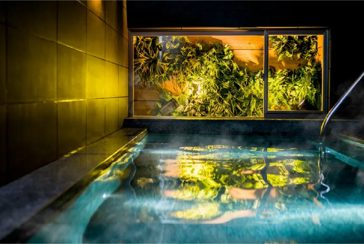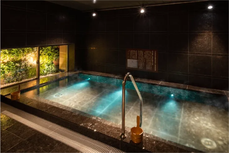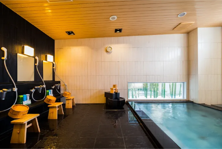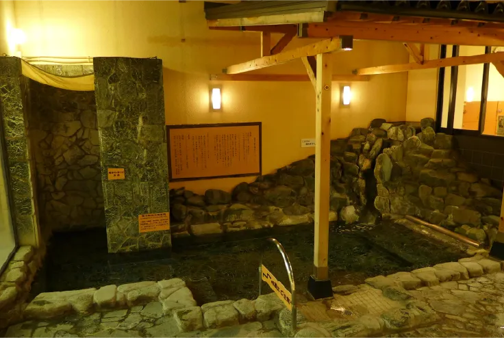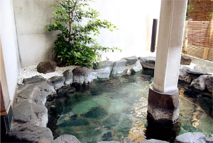 お肌に優しくアルカリ性の無色透明のトロリとした濃い温泉により肌をツルツルすべすべになり、お肌のトラブルに効果的です。