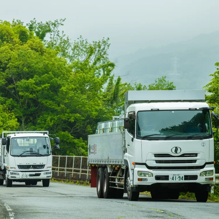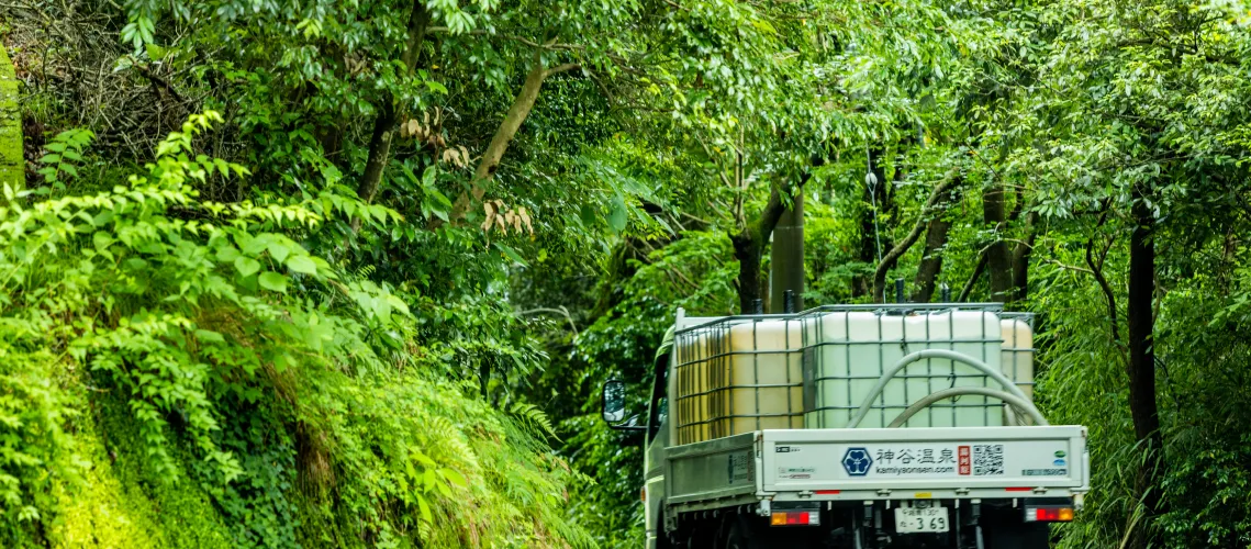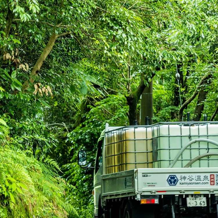 13台の温泉配送専用車で、巨大スパをはじめとした施設への配送を行なっております。